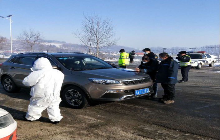 抚公线黄领子卡点外省车辆人员登记、测温